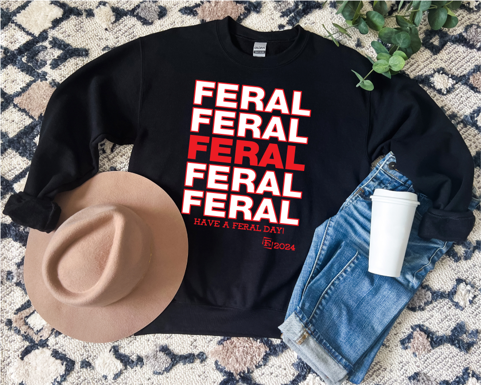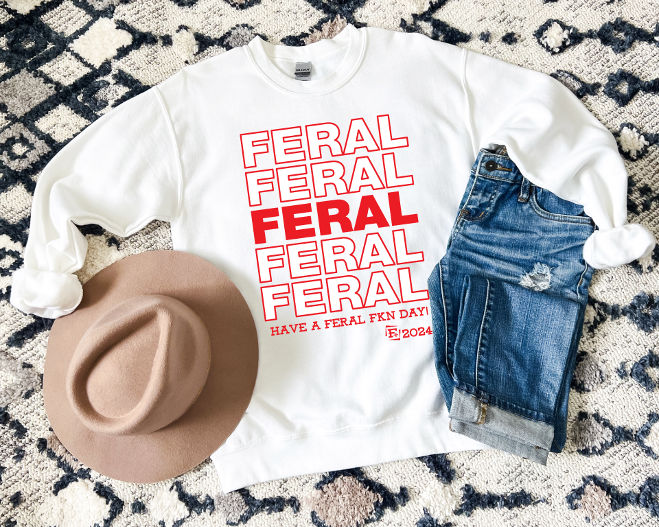 Spread some FERAL vibes with this Thank You!! Have a Feral Day! t-shirt, hoodie, and crewneck collection. Perfect for those who don't take themselves too seriously and want to add a little quirk to their wardrobe. Available in a variety of styles for all your FERAL FKN adventures. Available in "Have a Feral Fkn Day! "" or "Have a Feral Day!"
